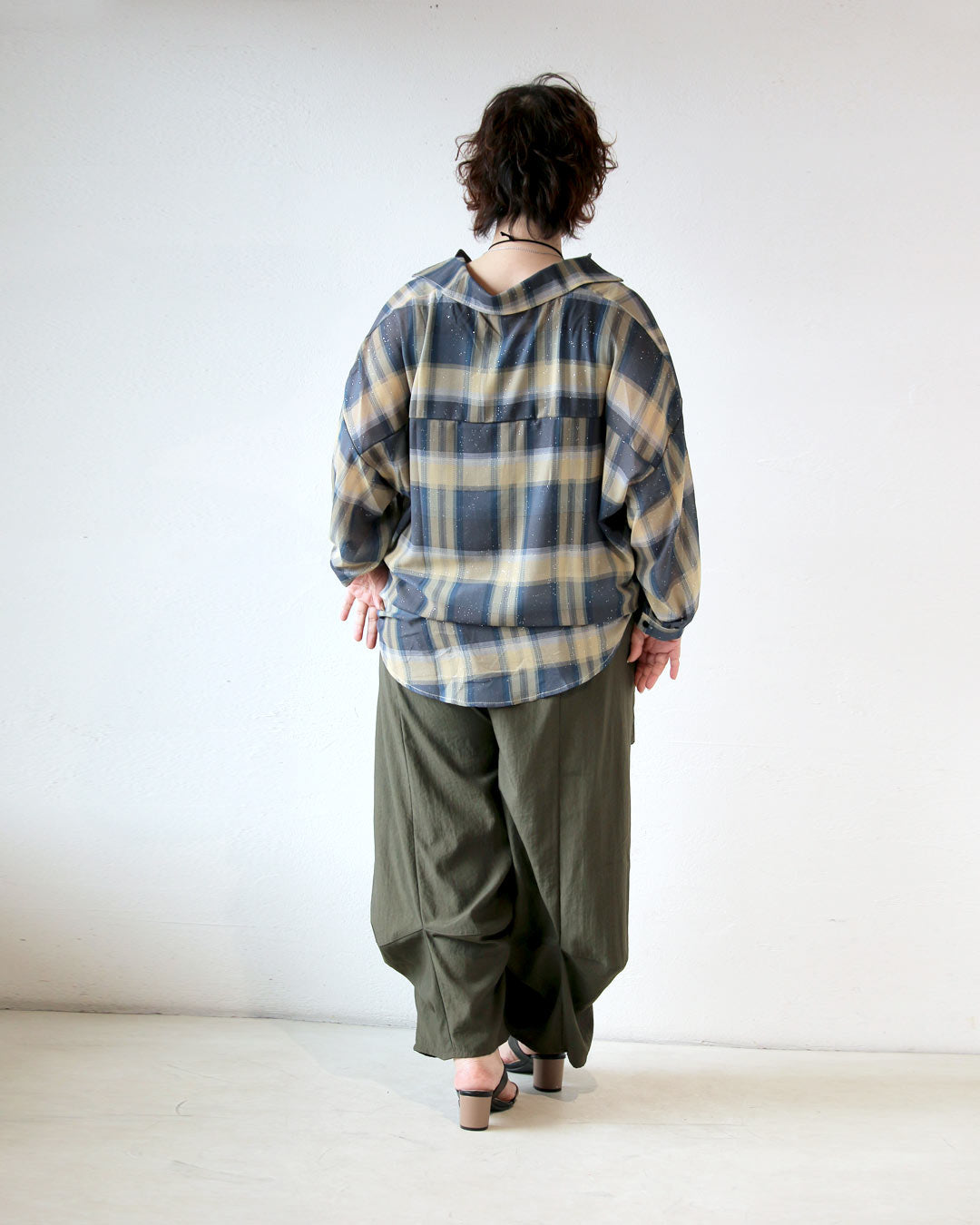 やわらかな配色と程よいシアーなチェック柄は、カジュアルになりすぎず大人世代にも取り入れやすいのが魅力。