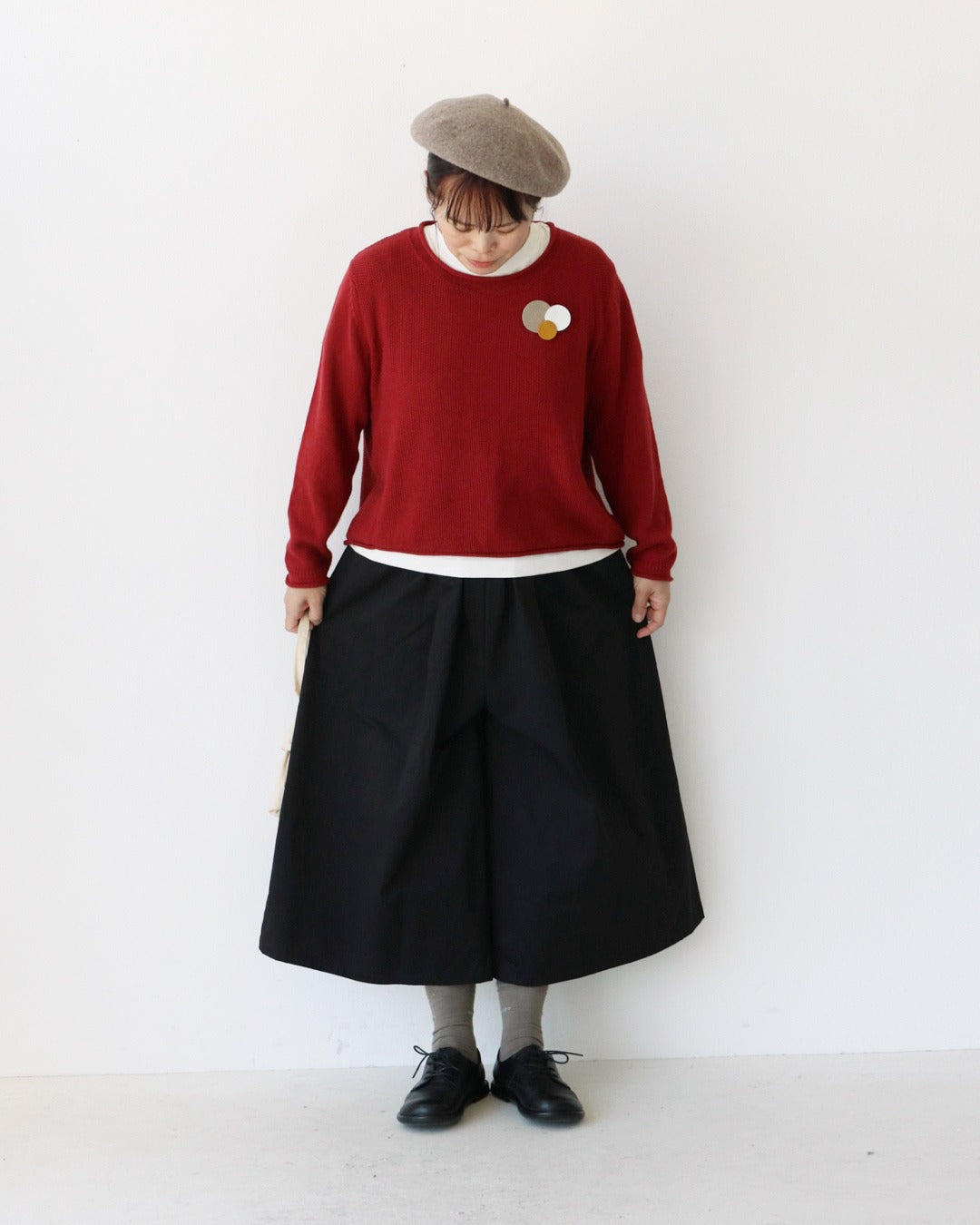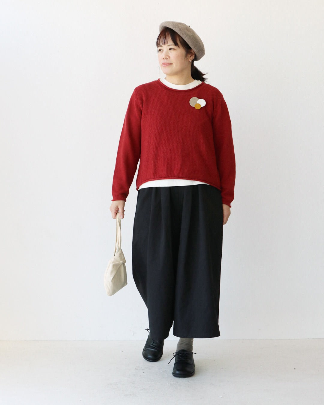 モノトーンコーデの差し色に、気持ちも華やかになる赤ニットを♪