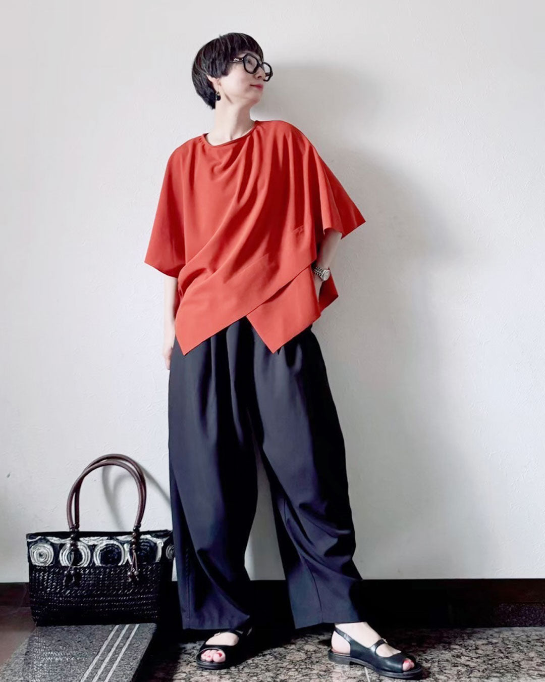 変形デザインと落ち感が綺麗でTシャツよりも品よく仕上がります。カジュアルにもきれいめにも着回し自在。デイリーからお出かけまで活躍するアイテムです