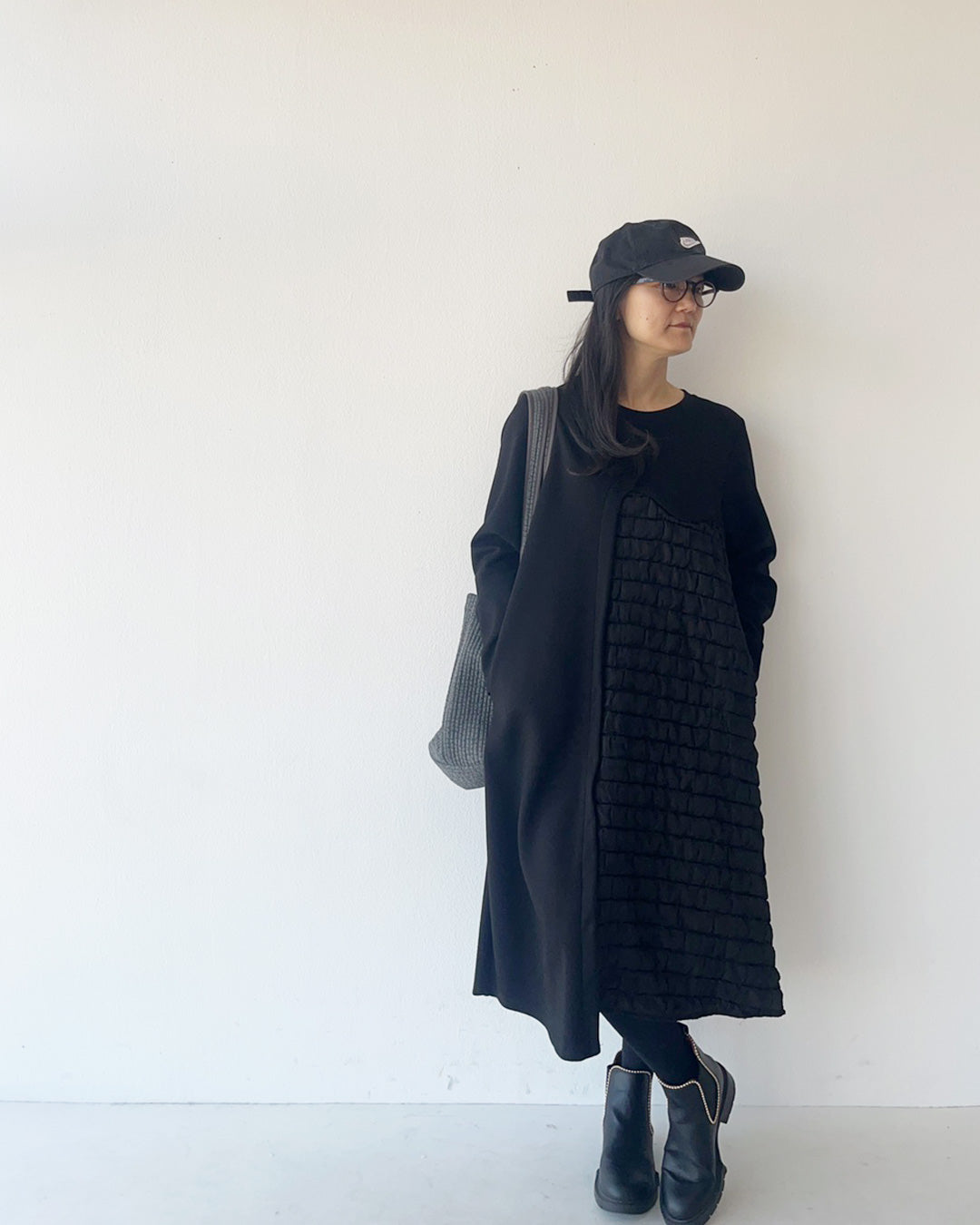 異素材を組み合わせて仕上げたスウェットワンピース。