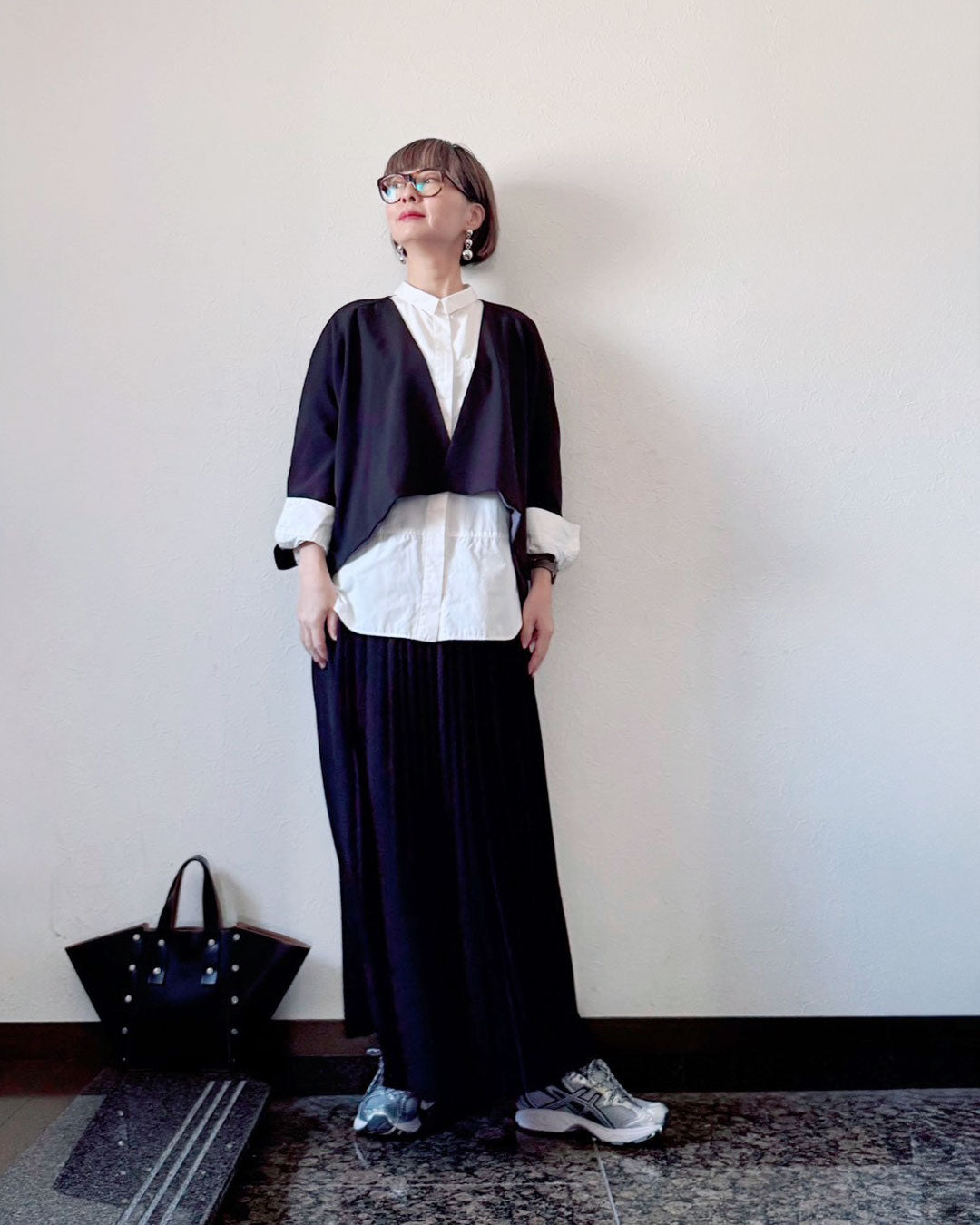 ボレロのような軽やかさ。さっと羽織るだけでコーデがすっきりまとまり自然とバランスよく見せてくれます。いつものコーデにおしゃれに馴染む、大人にちょうどいい一枚です。