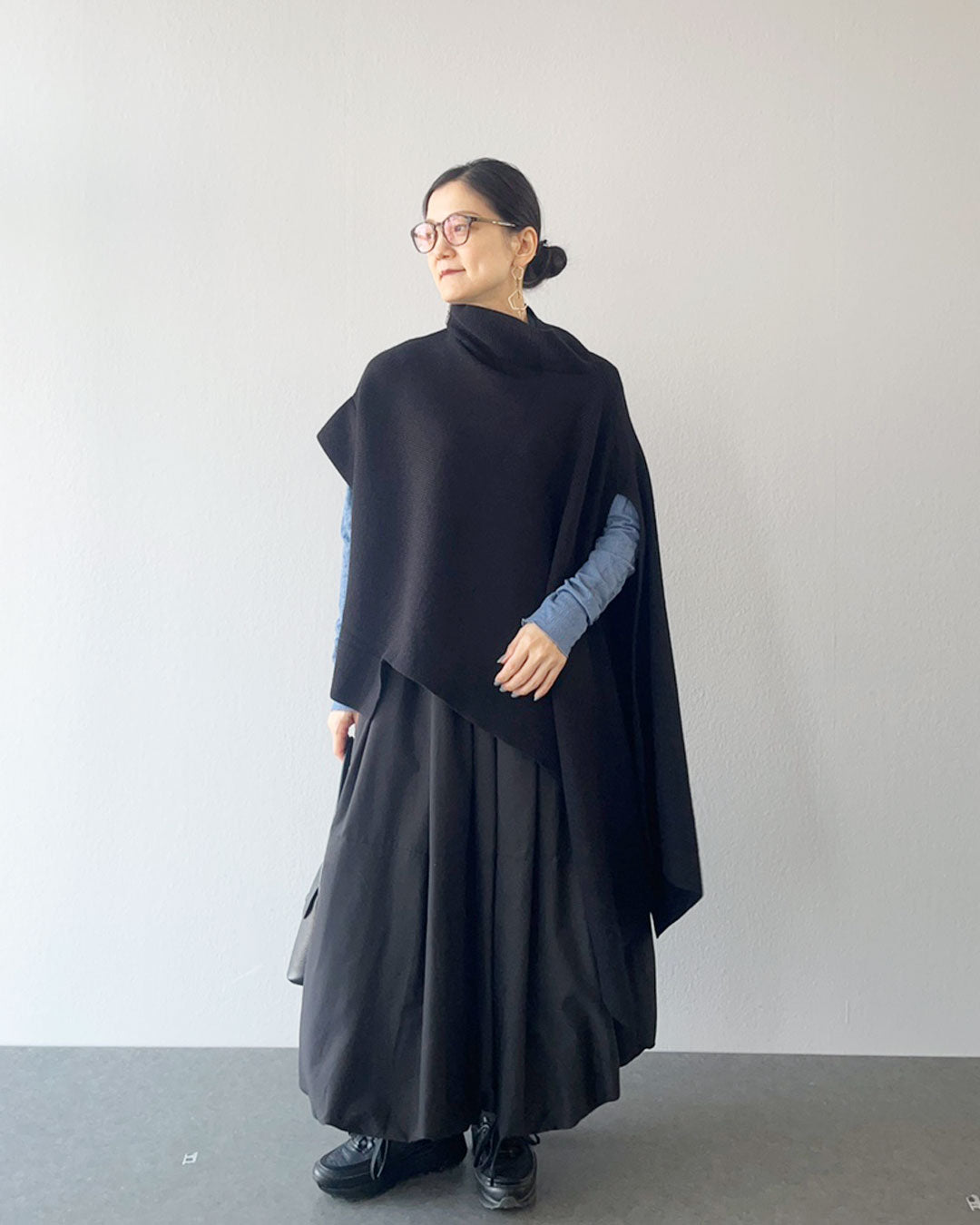ふんわりと広がるバルーンスカートを合わせることで、よりリラックス感がありながらもモードな雰囲気に。