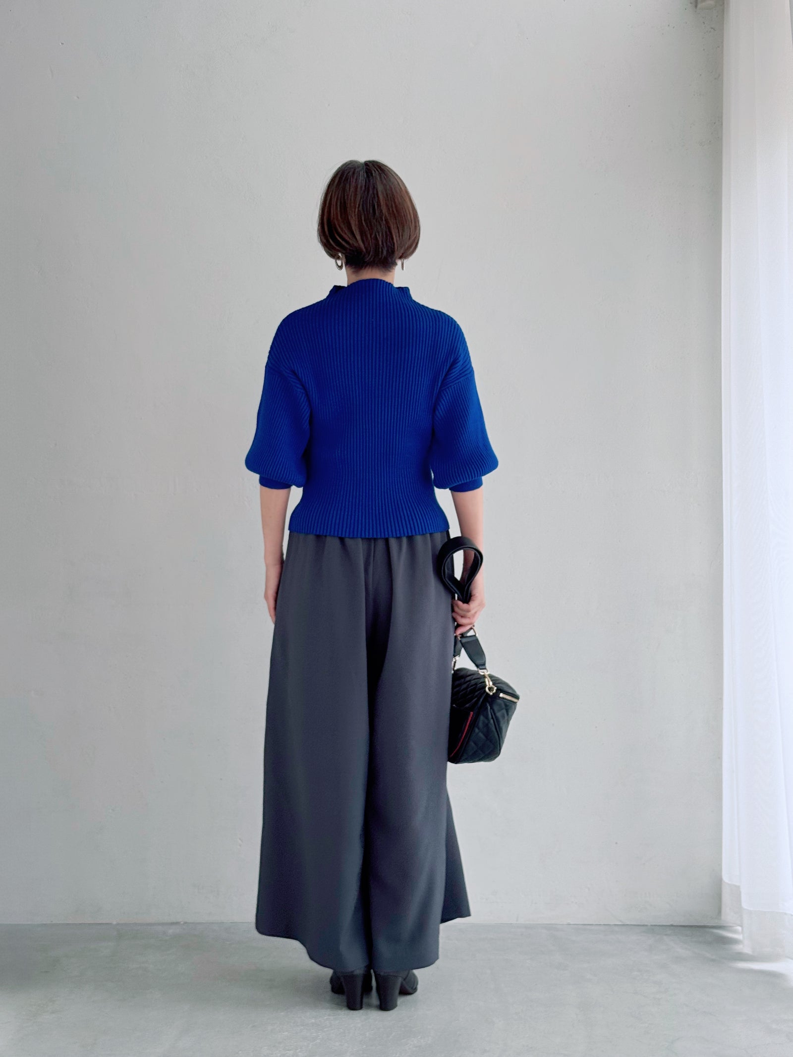 大人気のパンツに新色が追加❣️グレーはオンオフ問わずに使える万能カラーですよね😊パンツ苦手さんでも穿きやすいと好評なパンツです。私は167センチでL2Lのロング丈を着用しています。