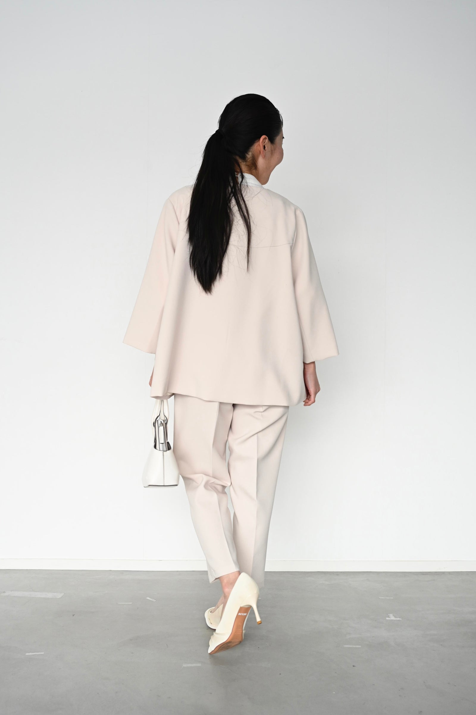 柔らかな色味でまとめた、品よく華やぐ大人のセットアップ