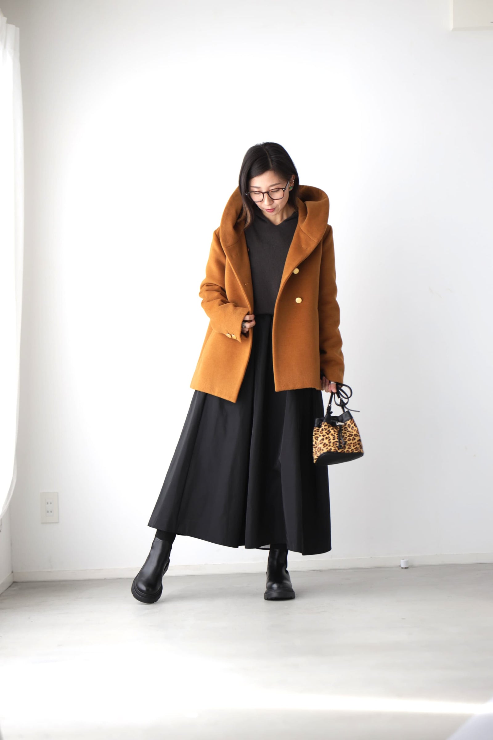 立体フードカラーreikoコートを主役に 冬の上品カジュアルコーデ