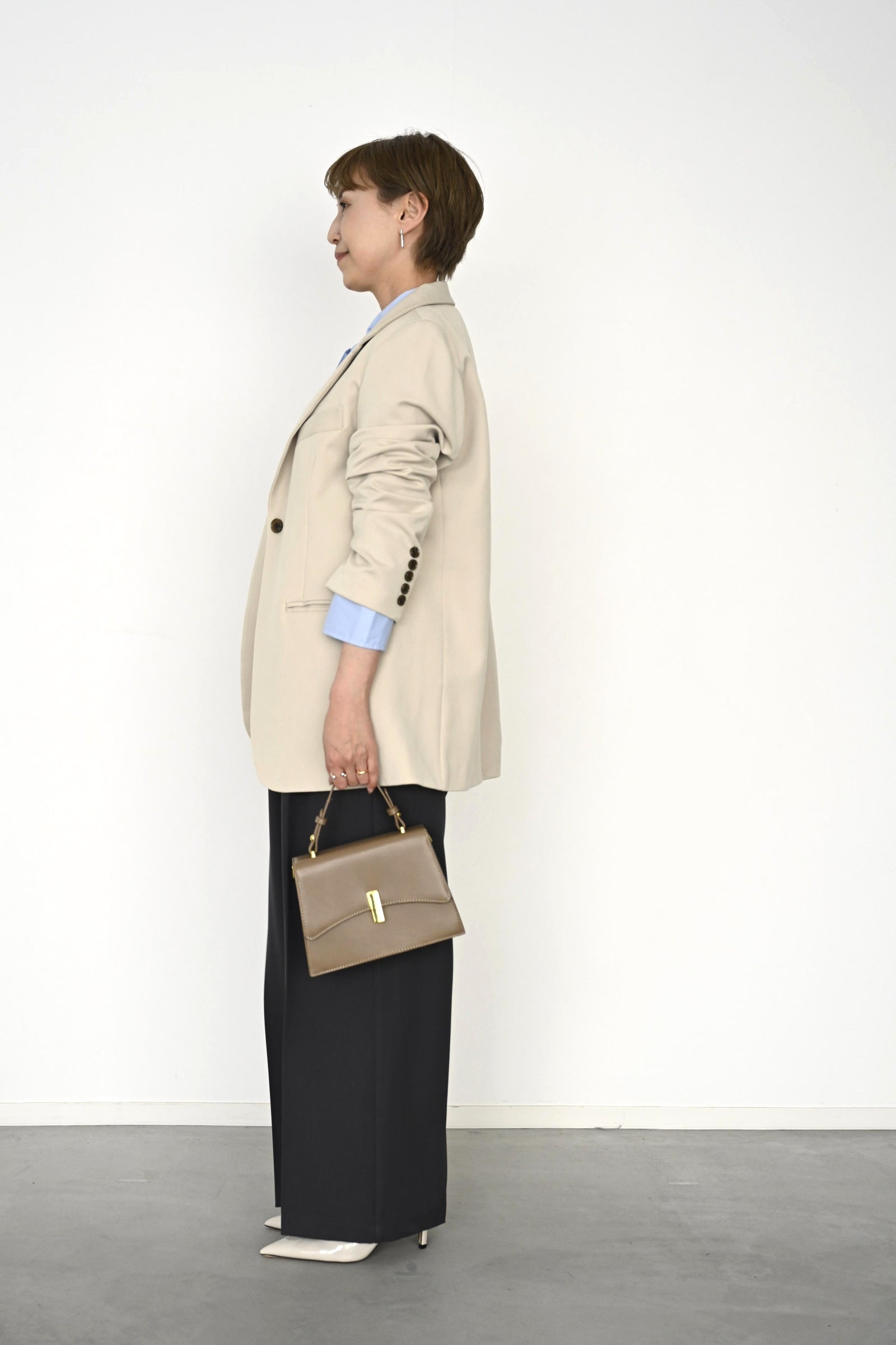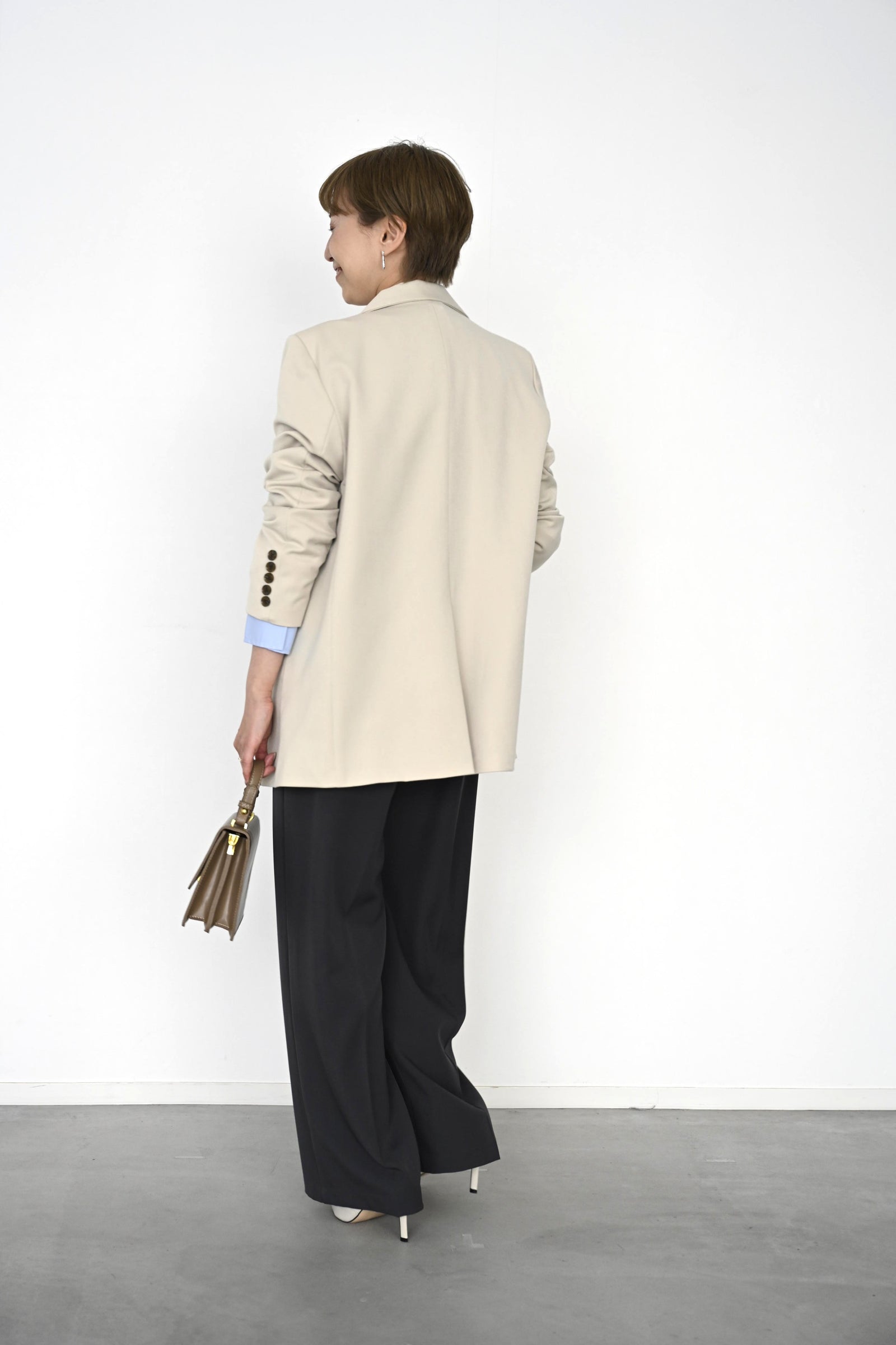 ライトベージュのジャケットとブルーのシャツで春らしい軽やかな印象を意識しました。
