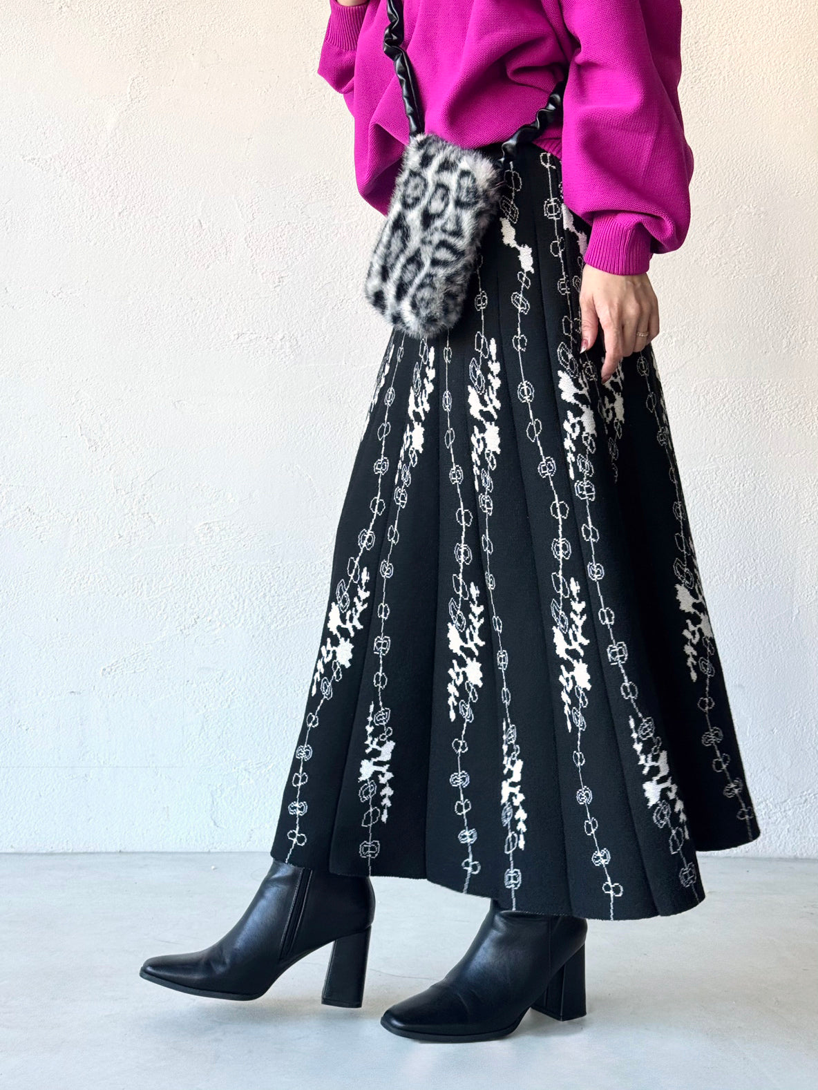 華やかさと上品さを兼ね備えたアート柄ニットスカートを合わせて冬コーデをアップデート✨