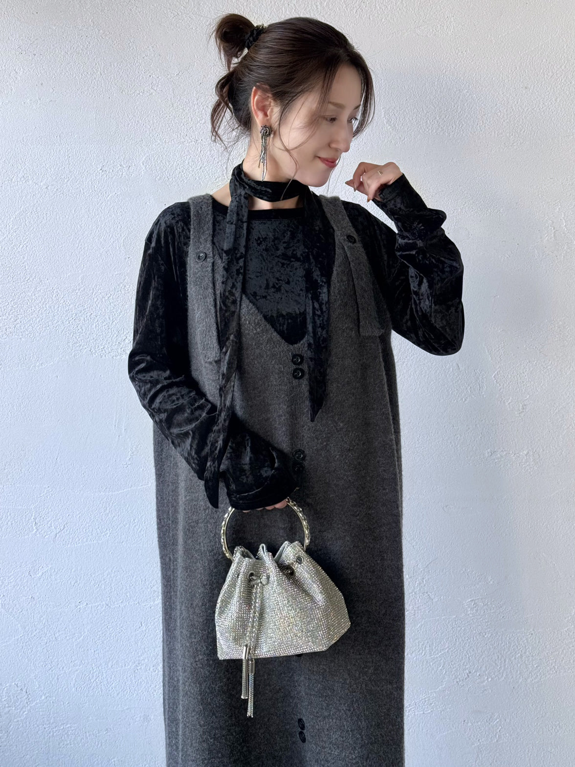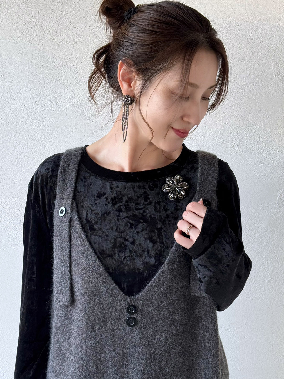 艶感が美しいブラックのベロアトップスに、