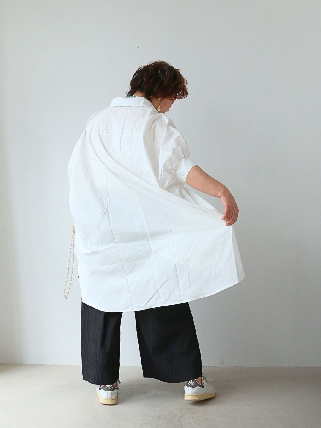 黒ワイドパンツで大人の引き締め効果をプラス+