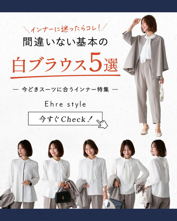 <Ehre style>インナーに迷ったらコレ!間違いない基本の白ブラウス5選 ─今どきスーツに合うインナー特集─
