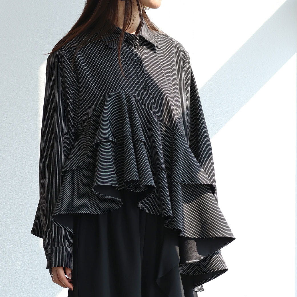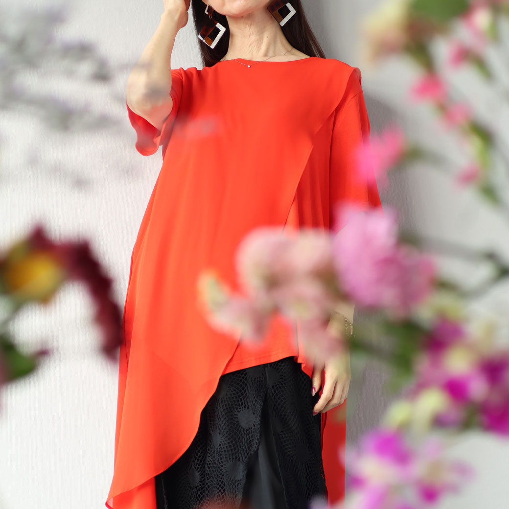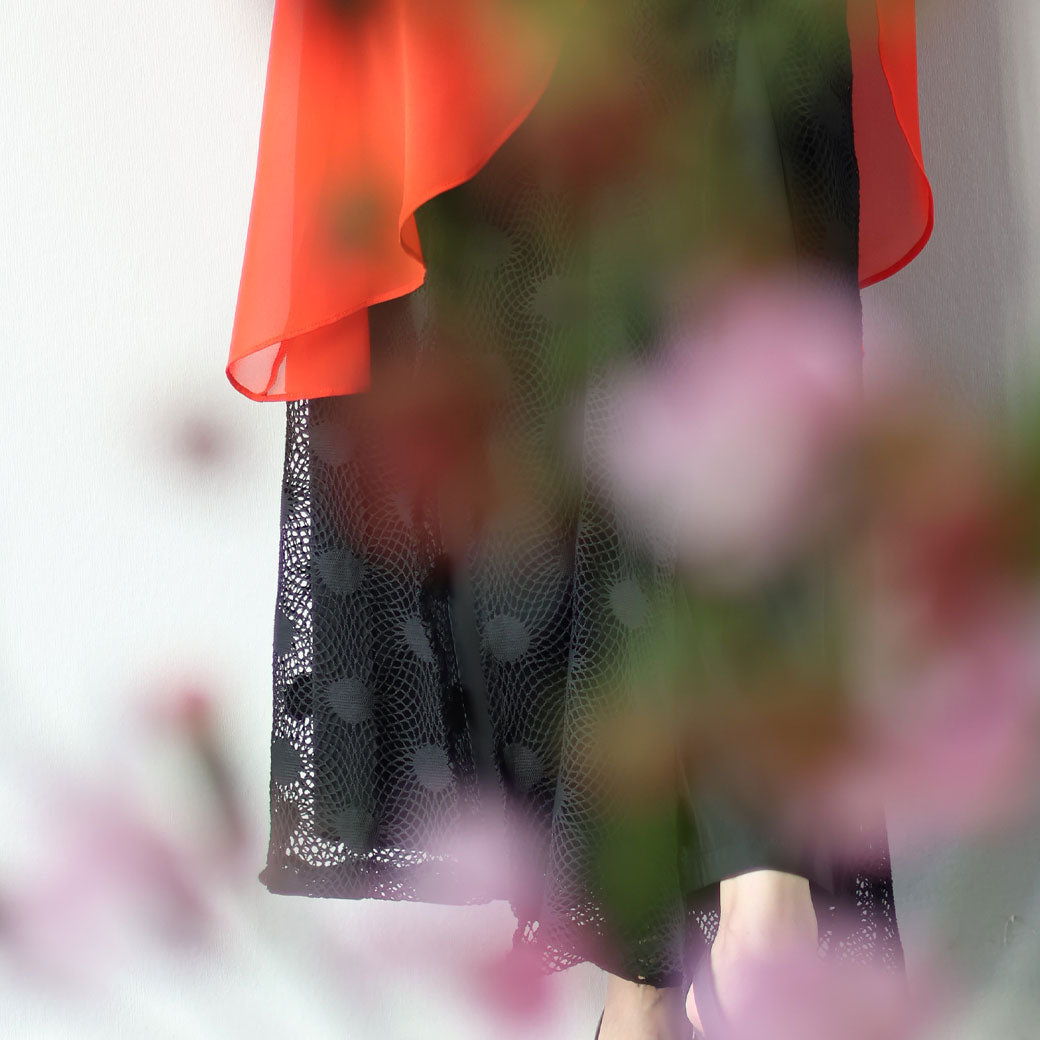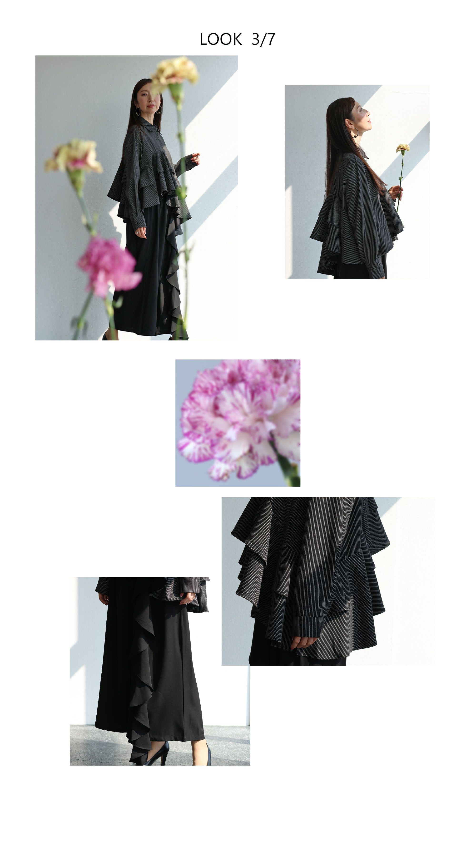 上品なフリル、シアー、そして「変形シルエット」を、
