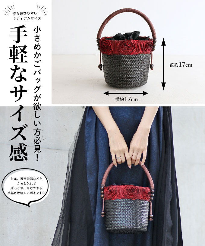 【 優美な薔薇を添えて かごバッグ 】