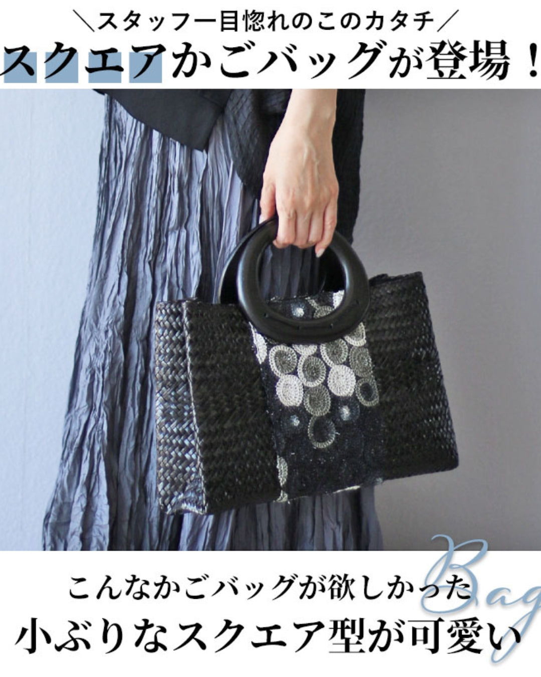 【 自在に愉しめる スクエアかごバッグ 】