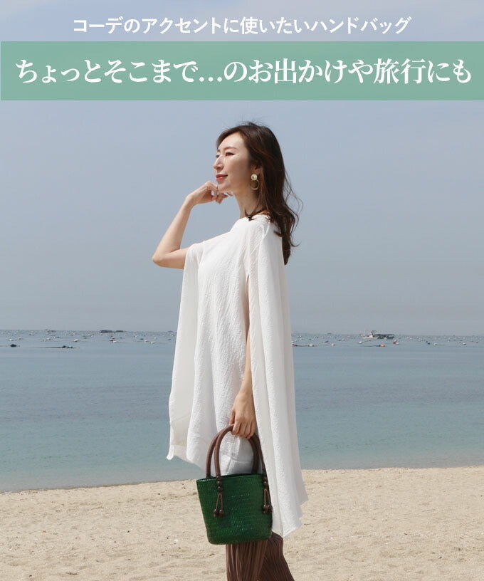 【 存在感のある大人グリーン かごバッグ 】