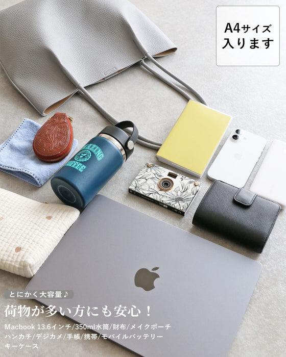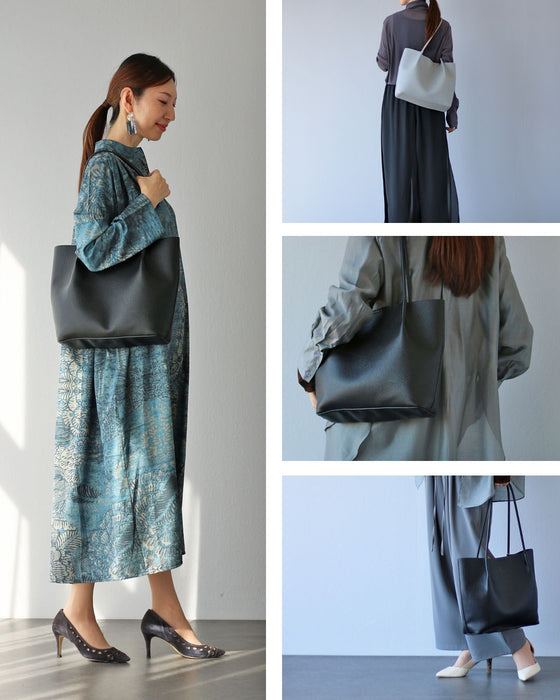 シンプルながらもお洒落なこのバッグは、オフィスからカジュアルなシーンまで幅広く活躍します。