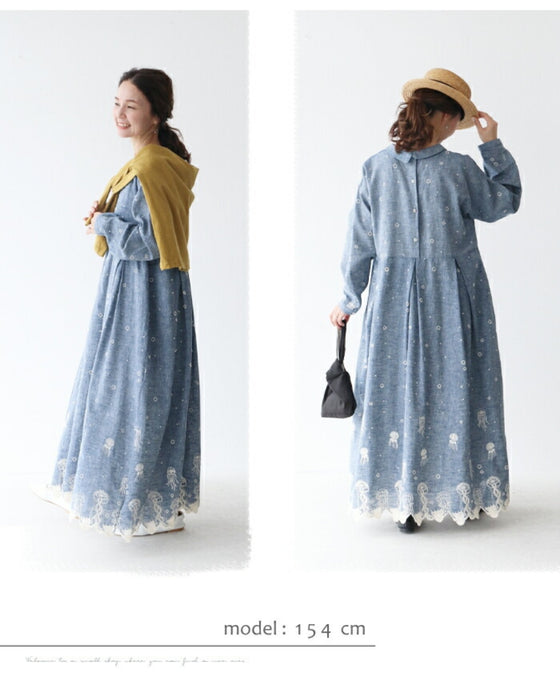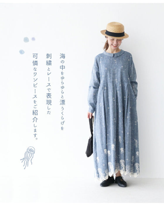 贅沢なくらげ刺繍 ワンピース