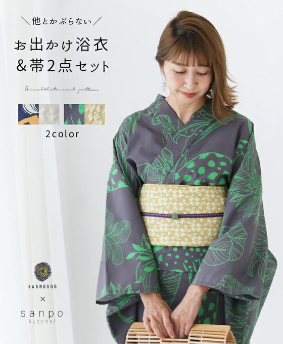 他とかぶらないお出かけ浴衣2点セット(ゆかたと兵児帯のセット)【set】