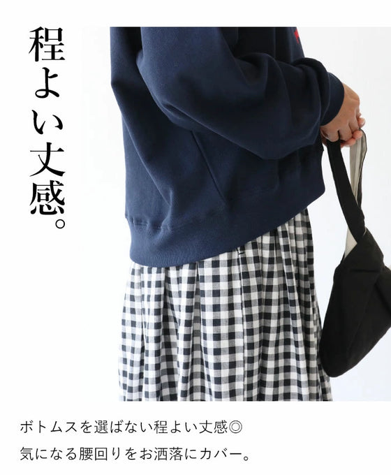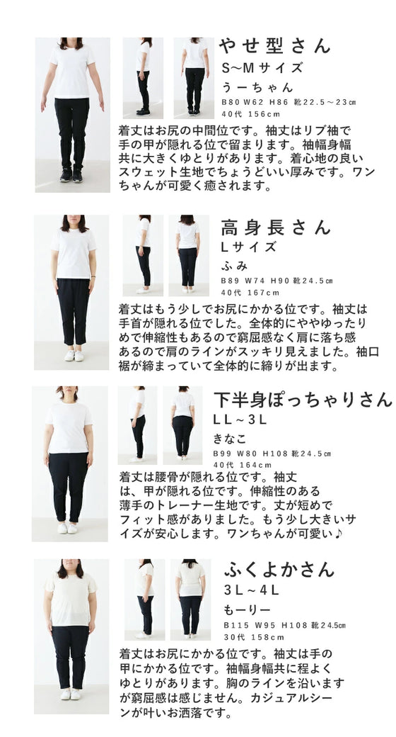 | Size | 肩幅 | 身幅 | 着丈 | 前下がり | 袖丈 | アームホール | 袖口 | 裾幅 |