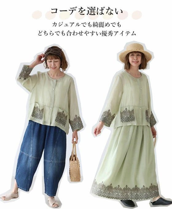 拾わず楽な着用感です。薄手で透け感が涼しげで