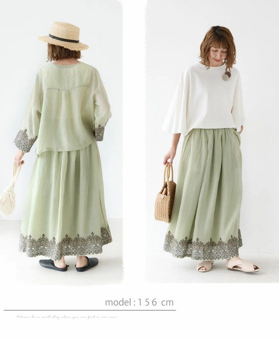2色の糸が織りなす贅沢刺繍スカート