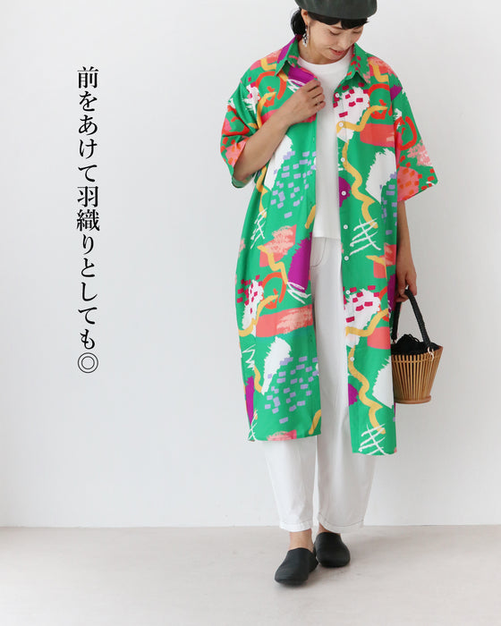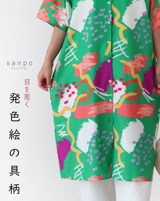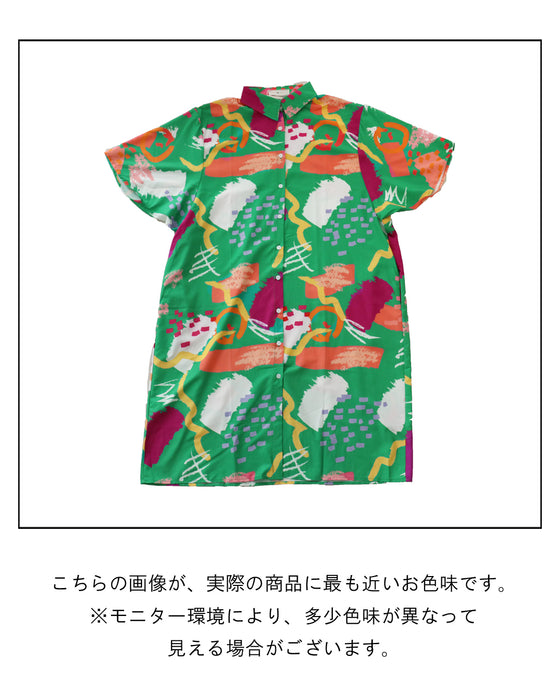 目を惹く発色絵の具柄 ワンピース