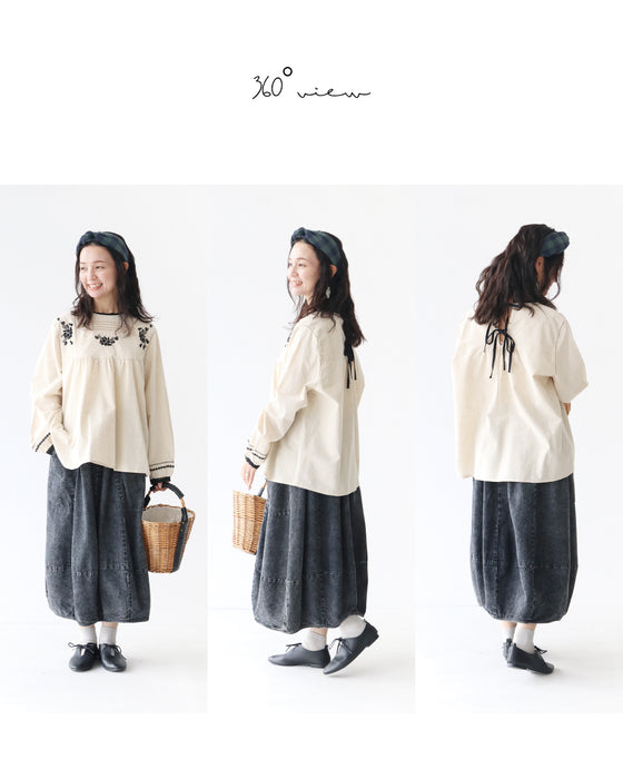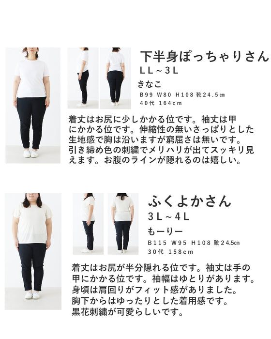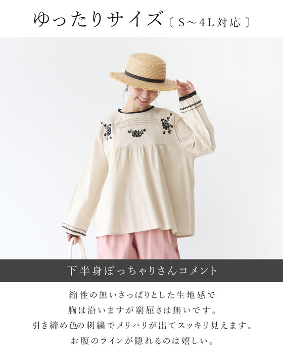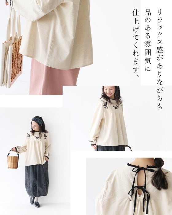 引き締め色の刺繍でメリハリが出てスッキリ見えます。
