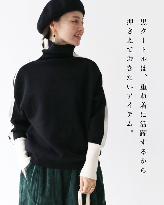 タイトなタートルで首元のラインが強調され、上品な佇まいに。