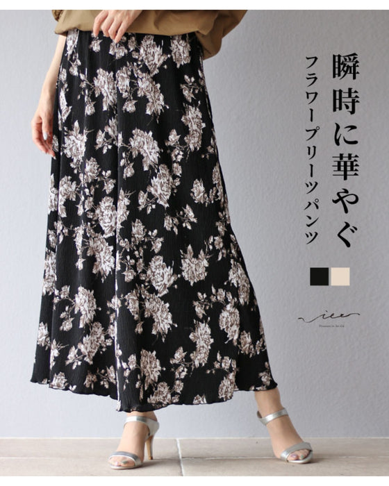 • 瞬時に華やぐ フラワープリーツパンツ