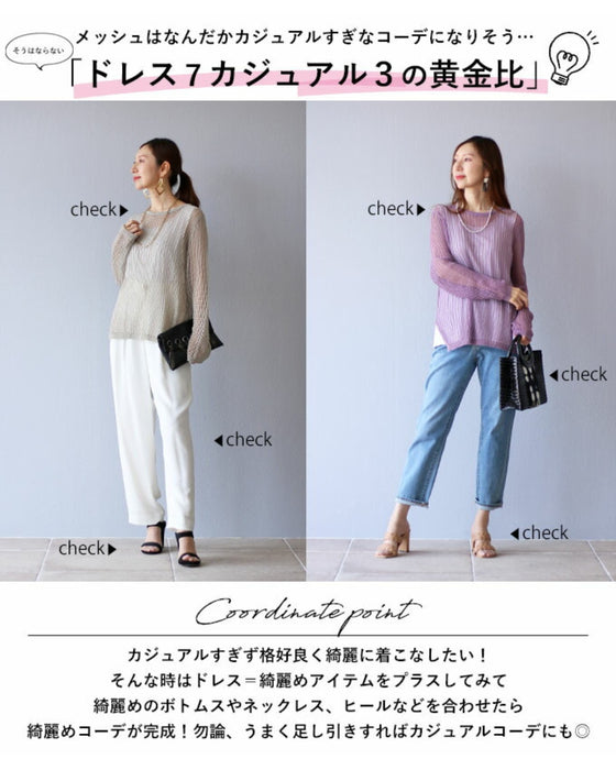 旬のメッシュデザインは、大人のお洒落を演出し、どんなボトムスとも相性よく、多様なファッションスタイルを楽しむことができます。2色展開で、お好みやシーンに合わせて選べるのも魅力の一つ。