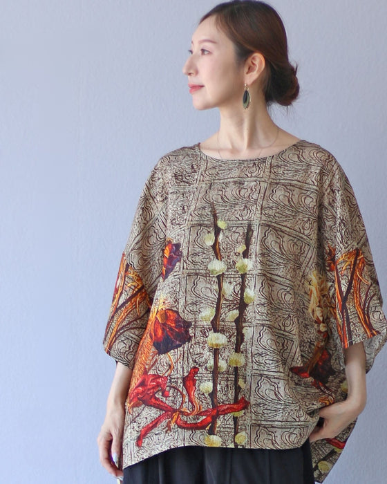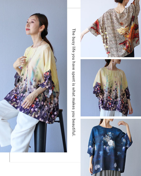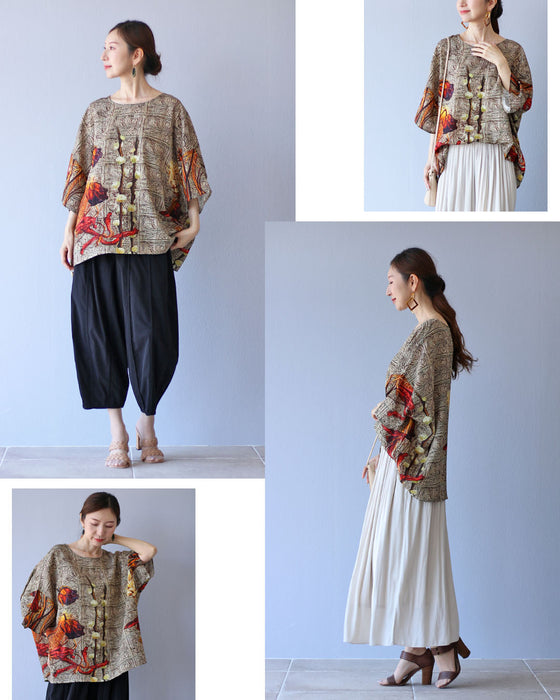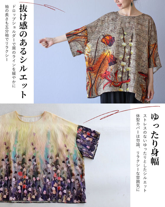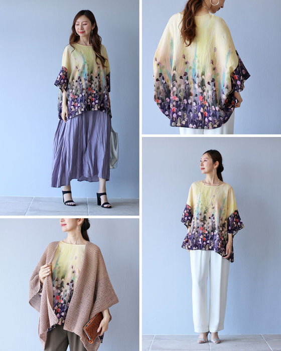晩夏の装いにぴったりなトップスです。ゆったりとしたフリーサイズで、どんな体型の方にも快適にフィットし、