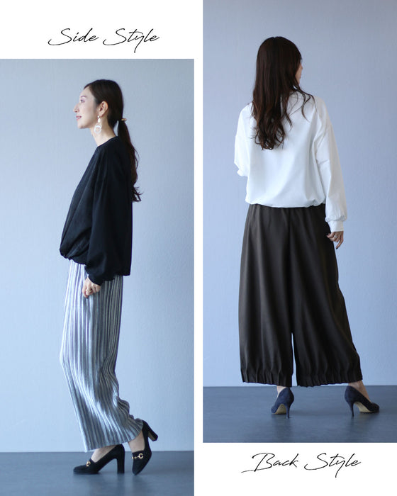 艶やかなカットソーは、2色展開で様々なシーンに着回し可能 綺麗なシルエットで細見え効果も期待できます。