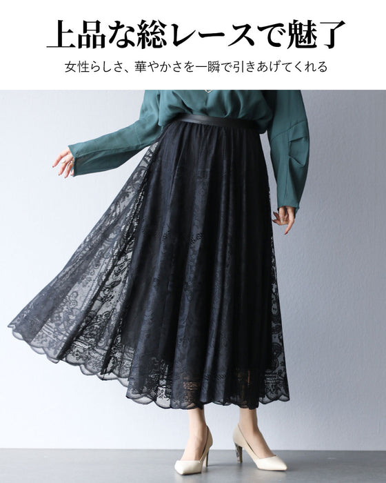上品で美しいレーススカートです。オンオフともに着回しがしやすいデザインです。