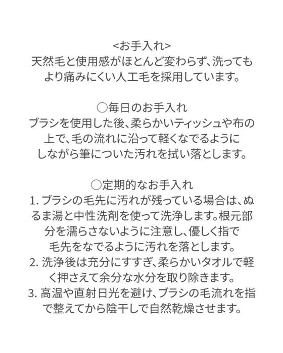 天然毛と使用感がほとんど変わらず、洗ってもより傷みにくい人工毛を採用しています。