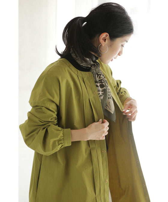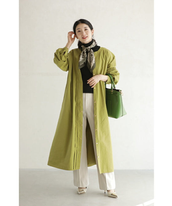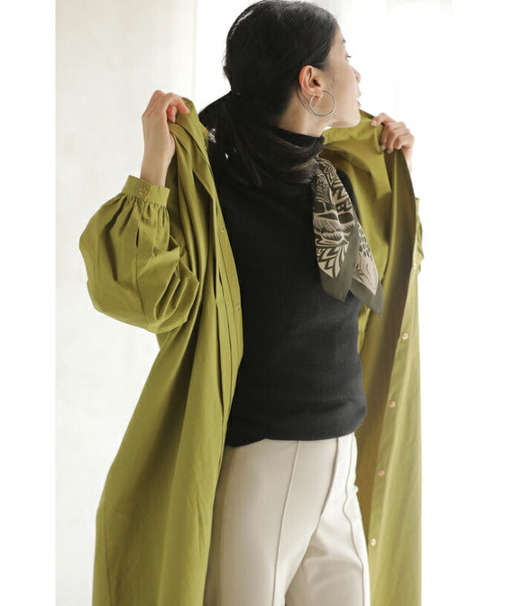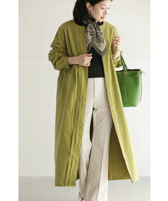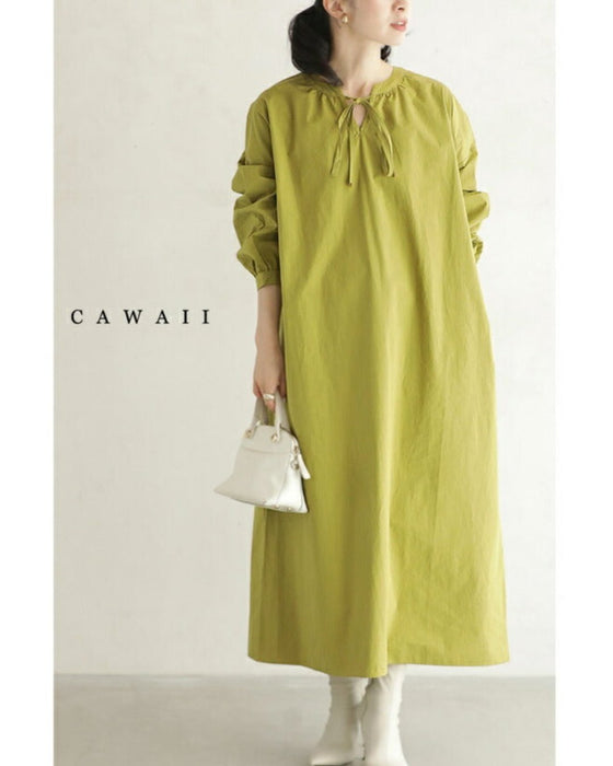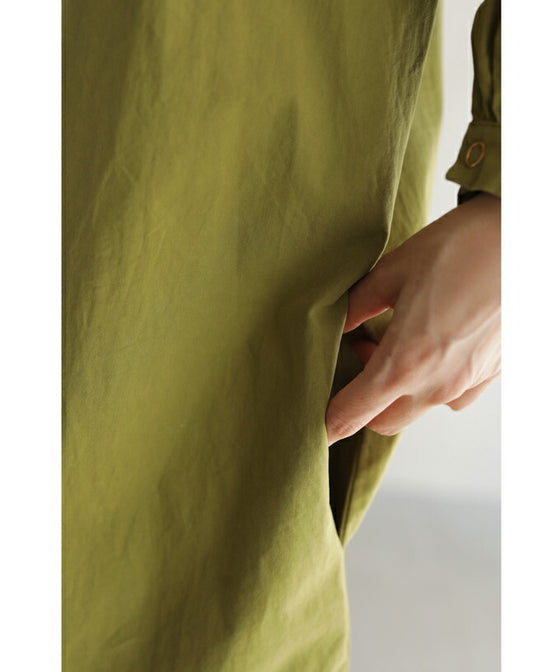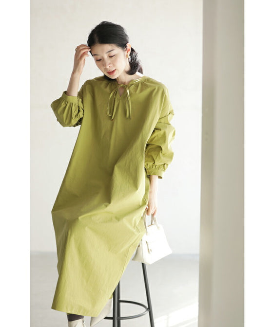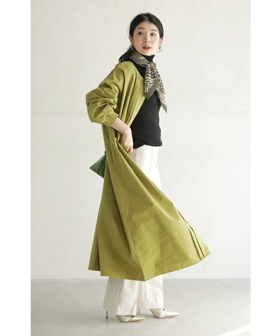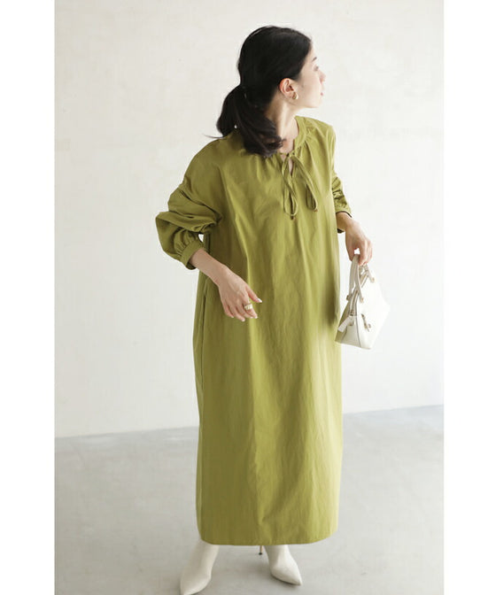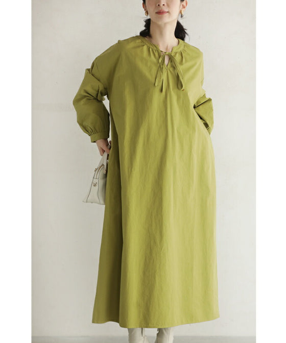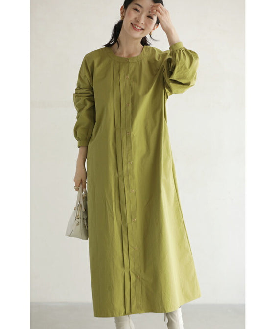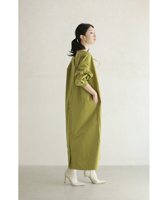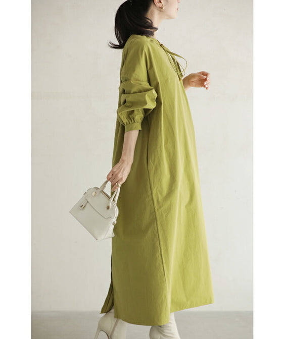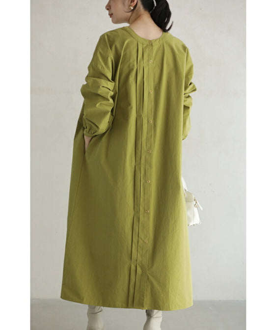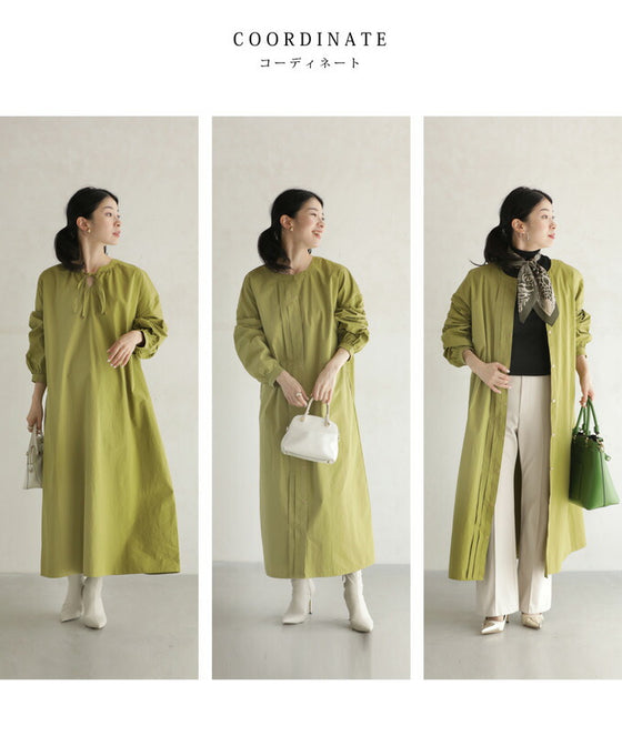羽織りにも。前後で着られるゆったりカラーミディアムワンピース