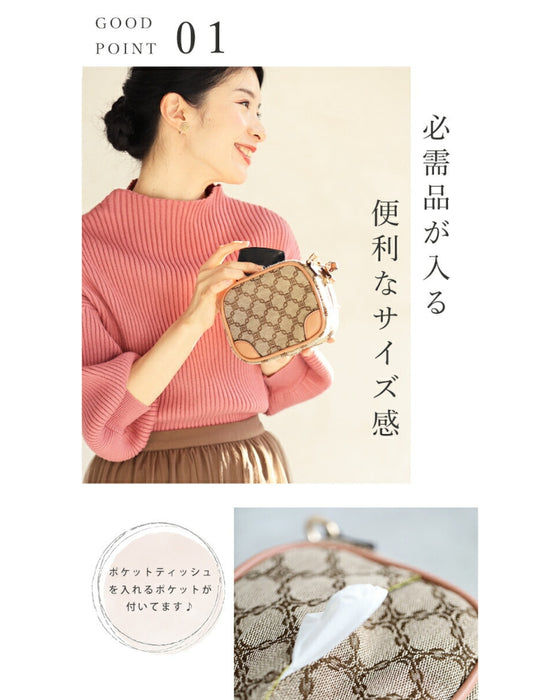 ポケットティッシュを入れるポケットが付いています♪ スマホ、ミニ財布、ポケットティッシュ、リップなど収納できて内側には両サイドにポケットが付いています。