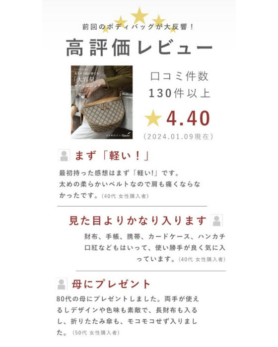 上品なセットアップにはベージュ系、やや甘めのコーデにはピンク系、 トラッド感のあるデニムにはネイビーがオススメ小さいのにしっかりと入ります。