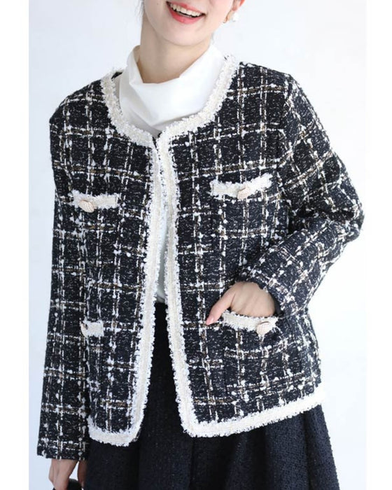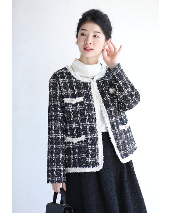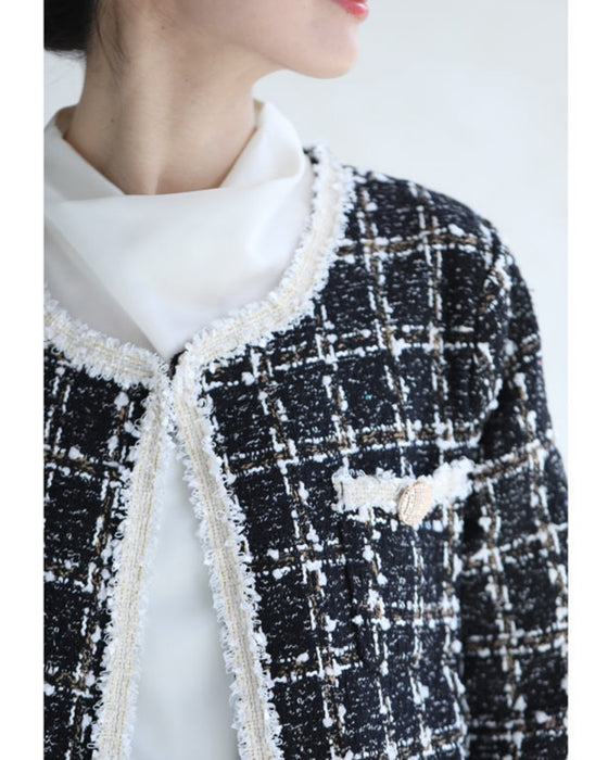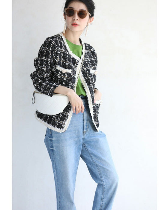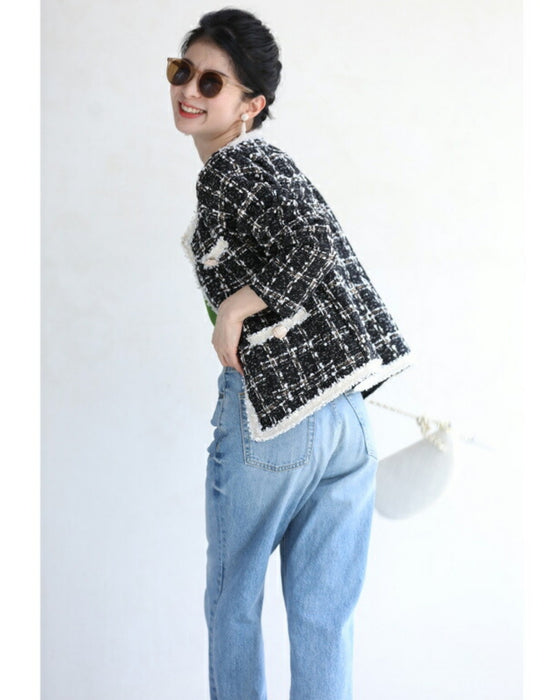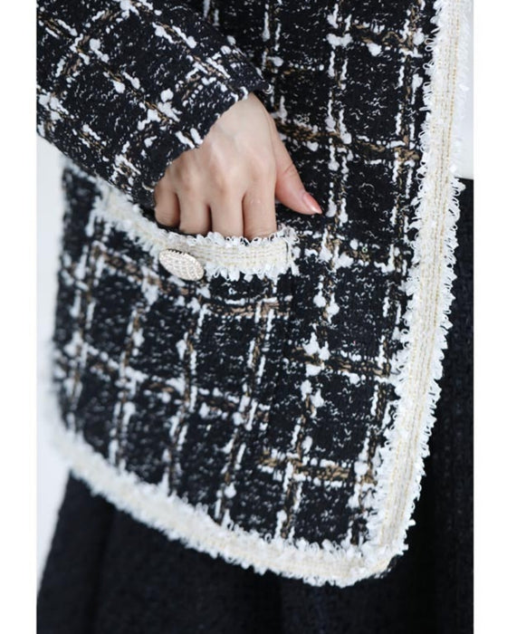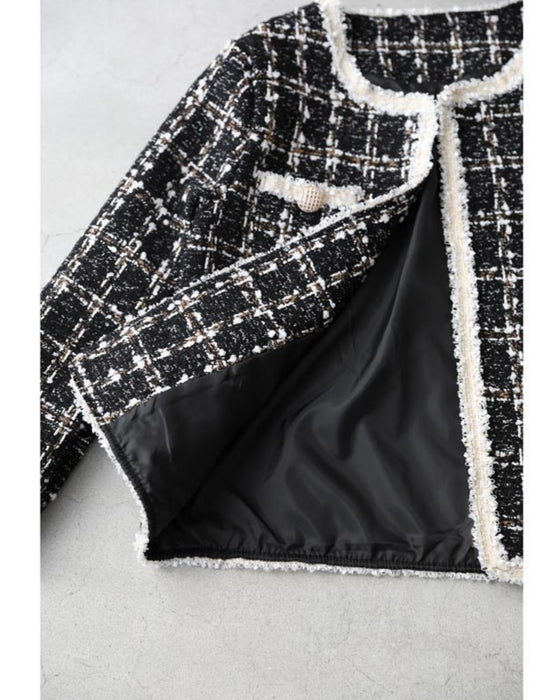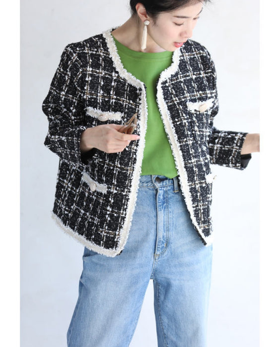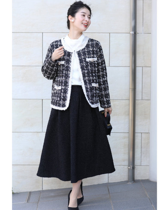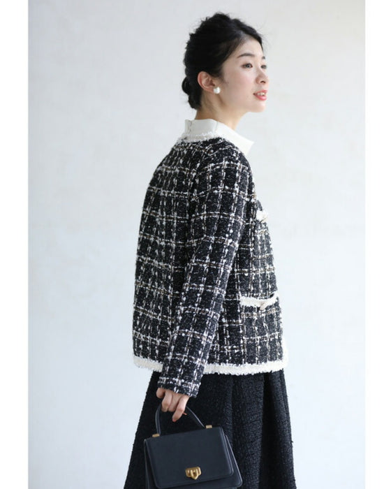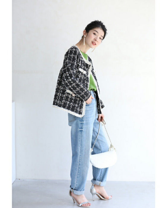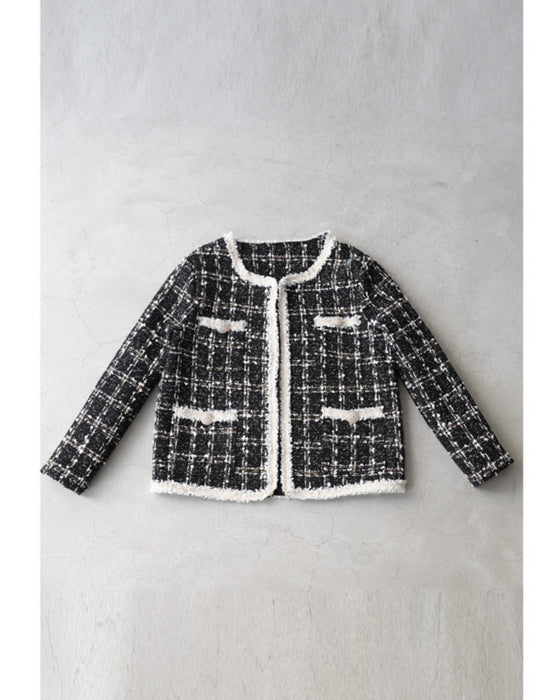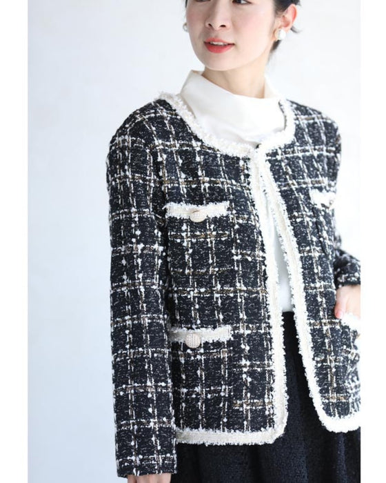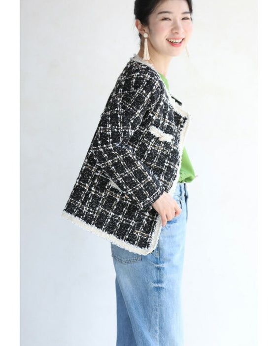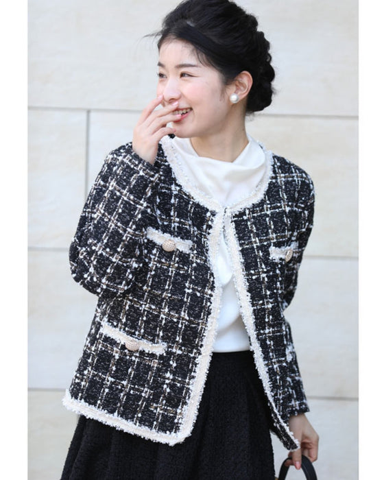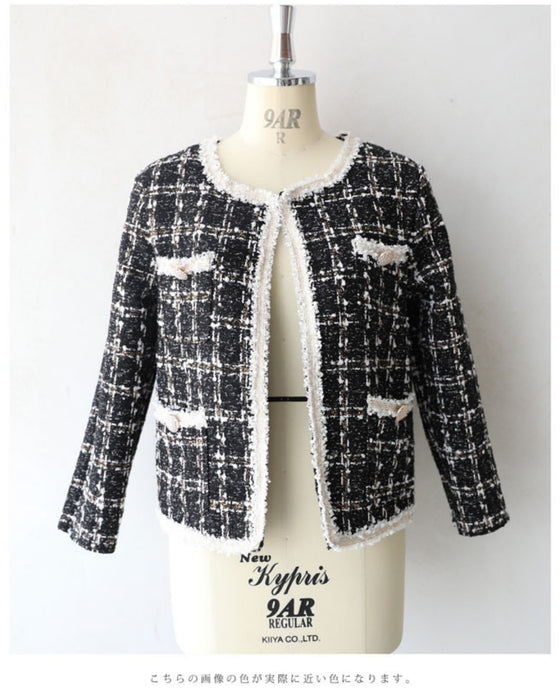 上品にもカジュアルにも。ループフリンジ囲むツイードジャケット