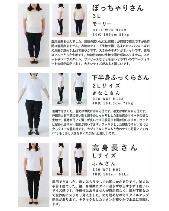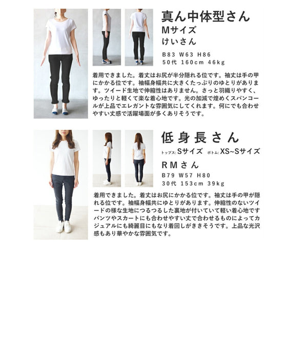 光の加減でキラキラと煌めくスパンコールが織り込まれていて上品で美しいです♫程よく厚みのある生地だから体のラインも拾いにくい。
