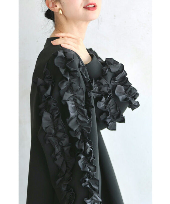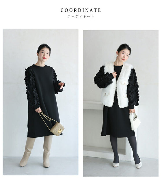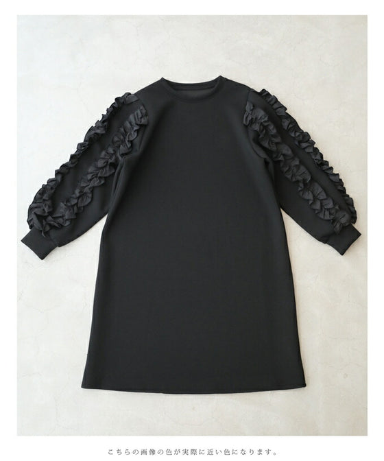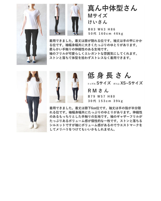 フリルがボリューム感をプラスしてくれますし、モチっとした生地感で肌触りもよく気になる体のラインも拾いにくい。