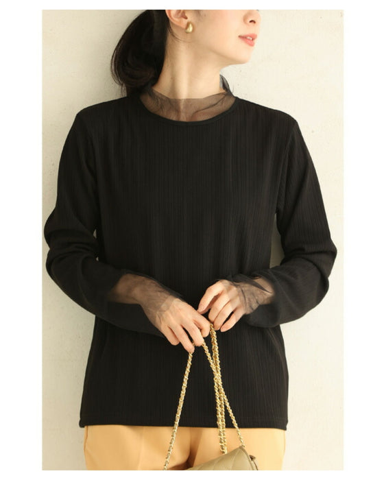 ふわりとカバーする2重チュールのリブカットソートップス