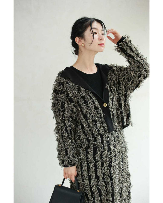 フリンジは、一見シンプルなアイテムでも華やかさと個性を与える素材です。少し特別な日のコーディネートにぴったりで、目を引くアクセントになります。