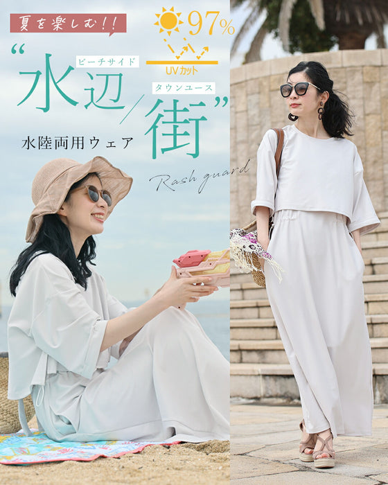 普段着にもなる 上品ラッシュガード 2点セット【set】