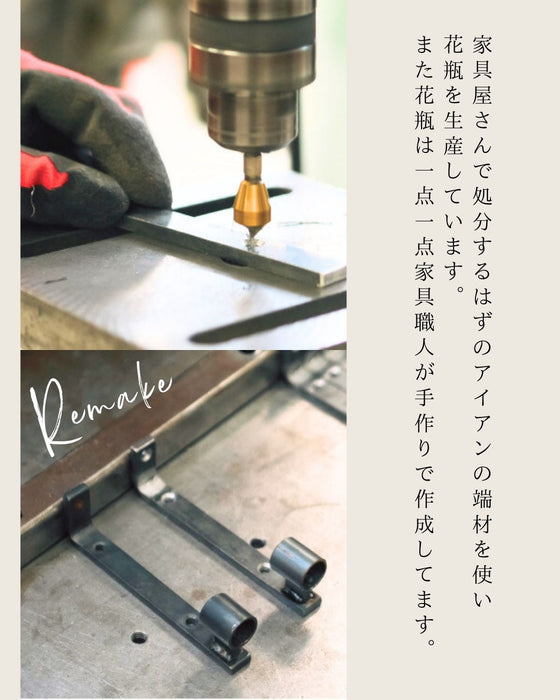 家具屋さんで処分するはずのアイアンの端材を使い花瓶を生産しています。