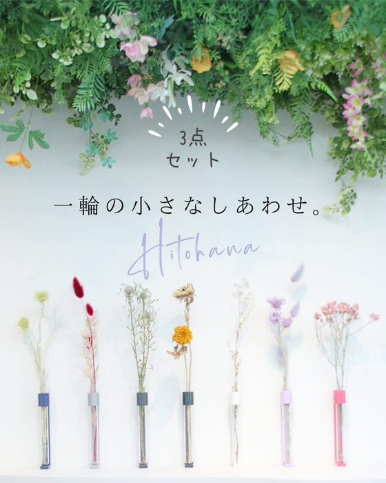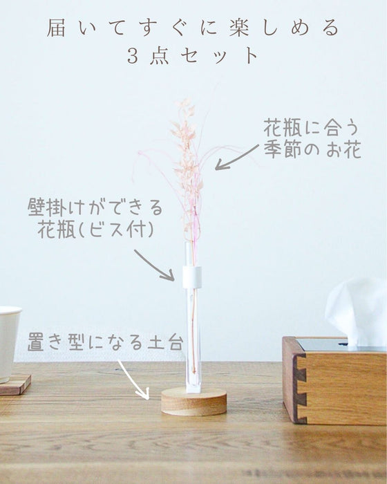 壁掛けと置き型が両方楽しめる一輪挿しと花の3点セット「HITOHANA」