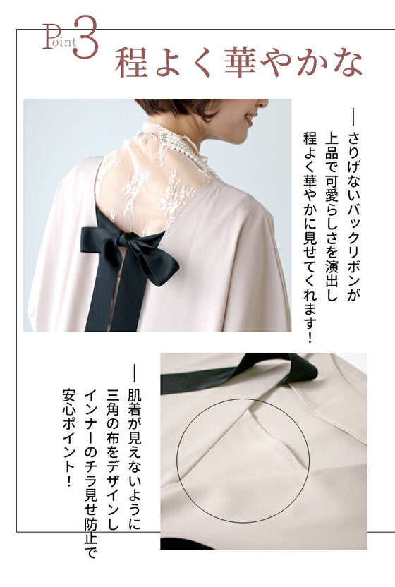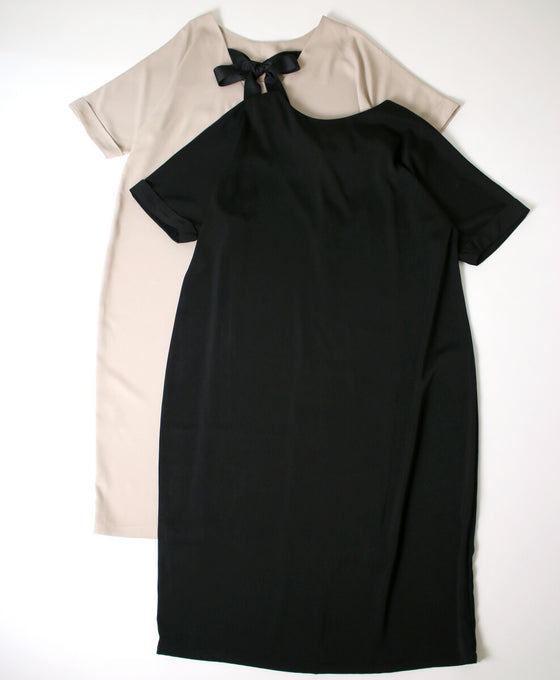 グレージュ ブラック スタイルフォルム レディース ファッション きれいめ 上品 カジュアル ワンピース コクーン バックリボン ゆったり リラックス 半袖 五分袖 スリット 黒