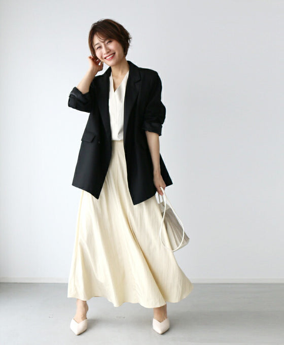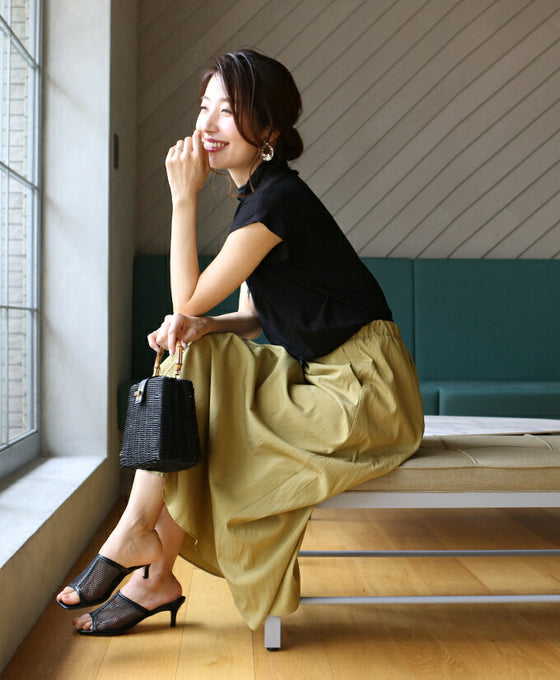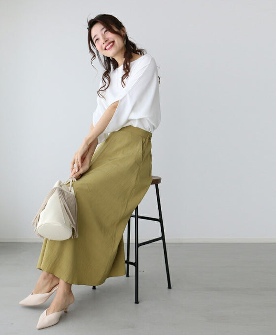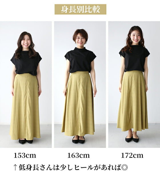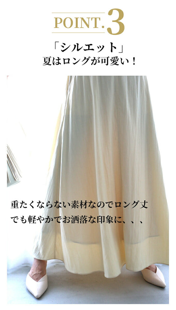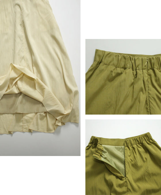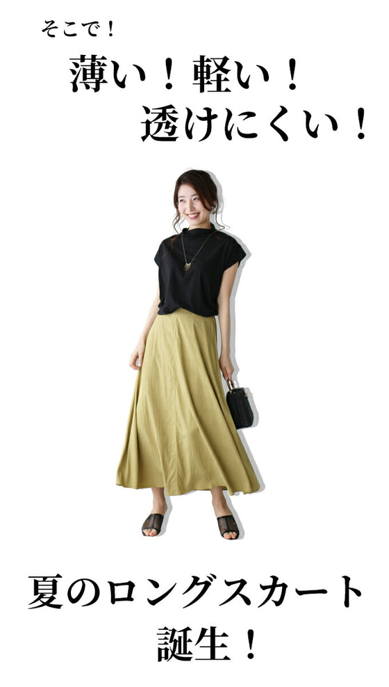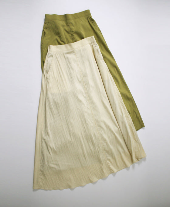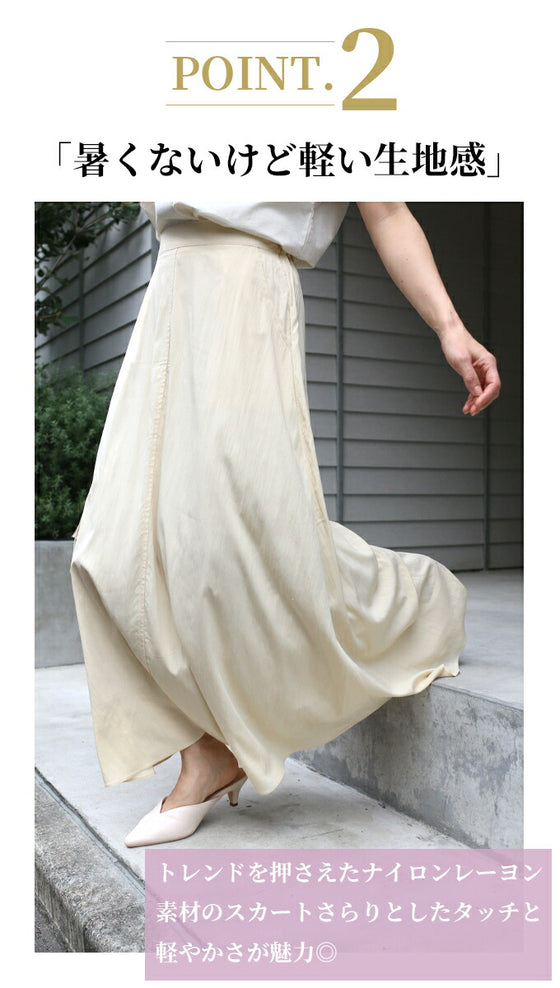 スカート ロングスカート 夏スカート カーキ ナイロン レーヨン 軽い ロング丈 フレア ウエストゴム チャック ポケット 裏地 オリーブ クリーム 透けない 薄い Ehre style スタイル エーレスタイル 春