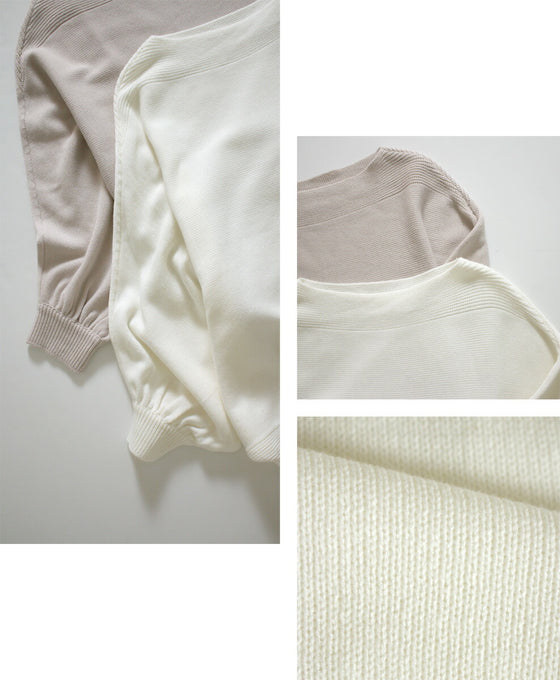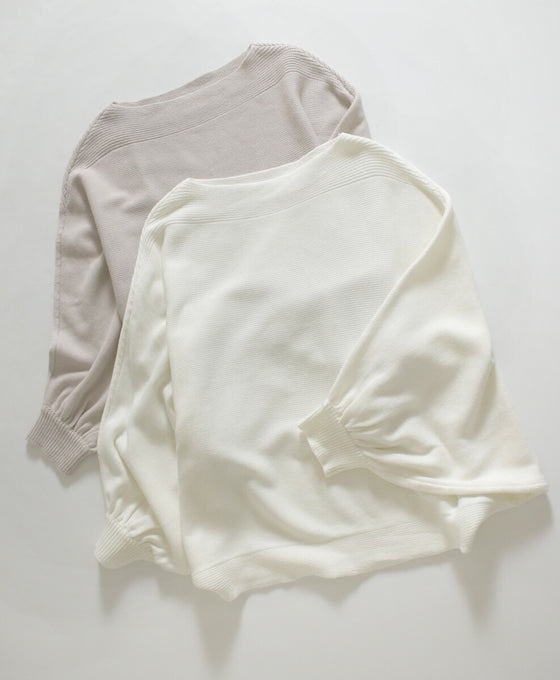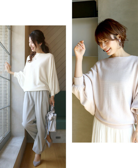 ドルマン ドルマンスリーブ ドルマン袖 ドルマン ボリューム袖 長袖 長そで ニット ボート ネック ブラウジング アイボリー ベージュ レディース ファッション Ehre style スタイル エーレスタイル