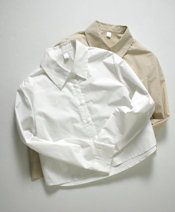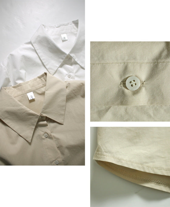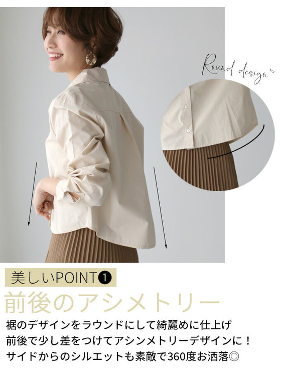 ショートシャツ シャツ オーバーシャツ 羽織り アシンメトリー 綿100 コットン ボタン ラウンド タック シルエット ベージュ ホワイト レディース ファッション Ehre style スタイル エーレスタイル