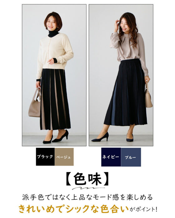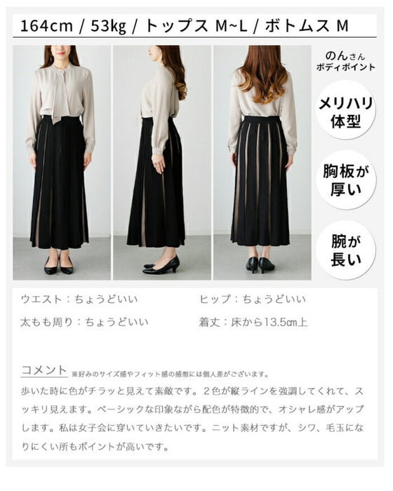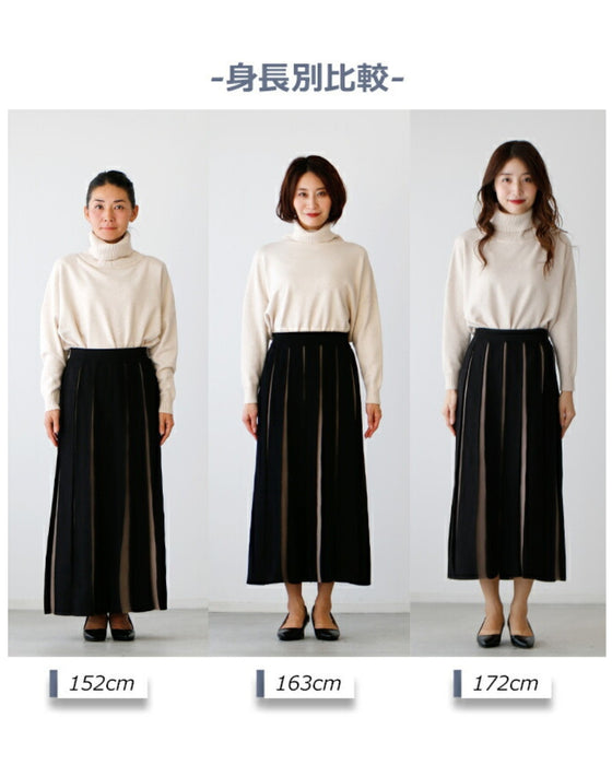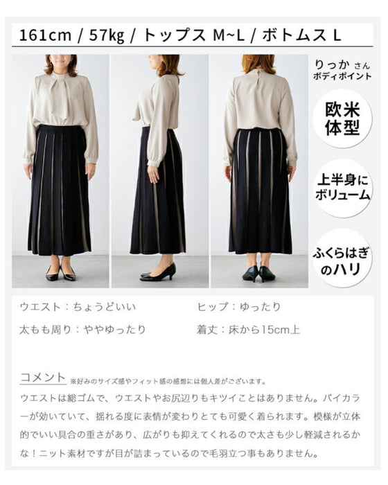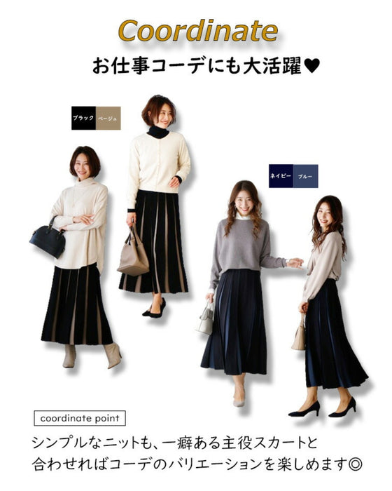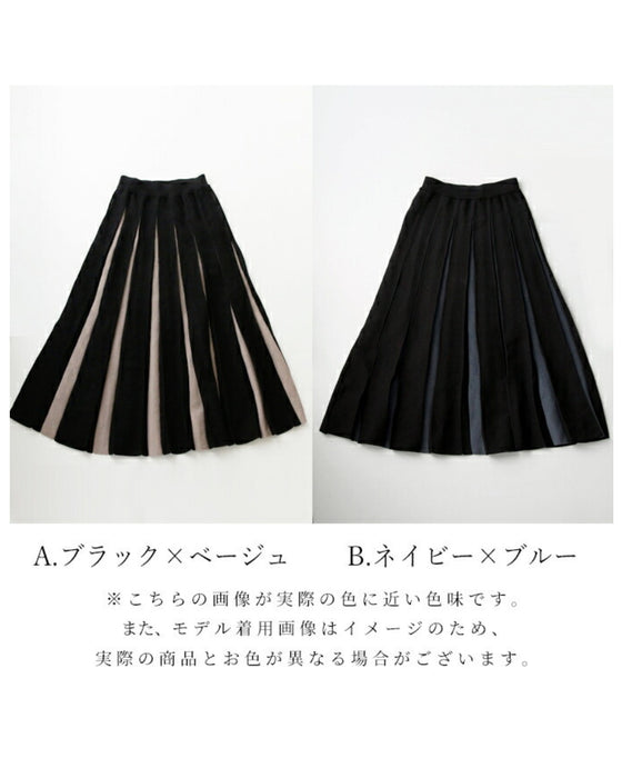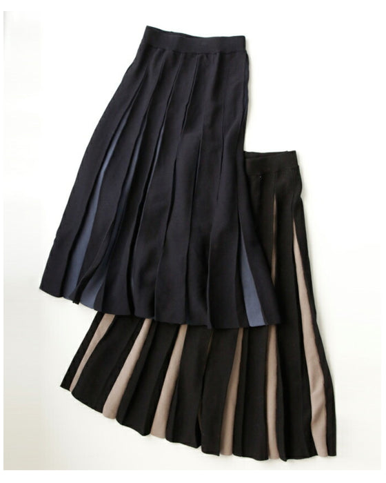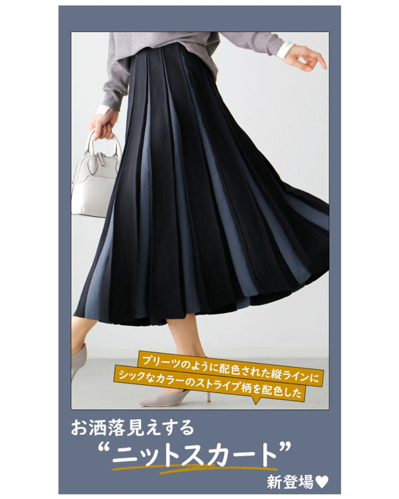スカート ニットスカート 配色 配色スカート プリーツ プリーツスカート レディース ストライプ柄 上品 暖かい 透けない ミモレ丈 ウエストゴム ブルー ネイビー ブラック ベージュ お仕事 ファッション 小柄さんもOK Ehrestyle フリーサイズ