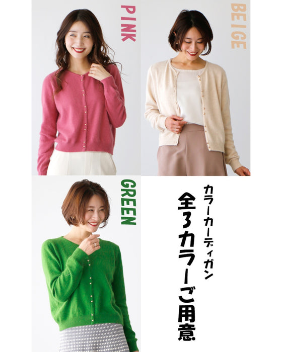 カーディガン カーデ カラーカーディガン カラーカーデ 長袖 ゴールド ボタン 可愛い 華やか 差し色 シンプル ピンク ベージュ グリーン Ehre style スタイル エーレスタイル 小柄さんもOK Ehrestyle フリーサイズ